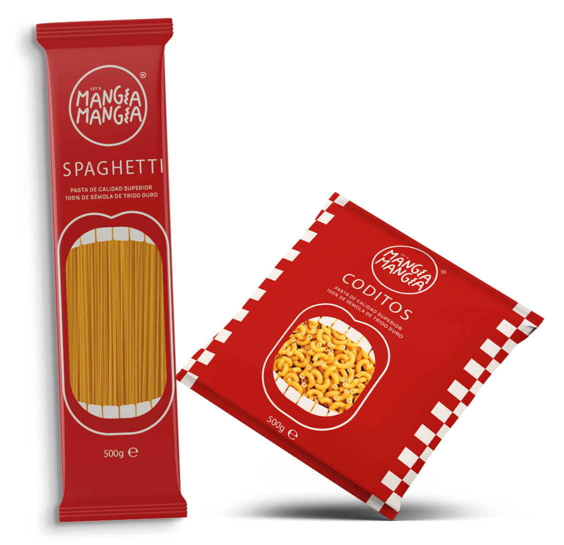 Exquisita selección de tipos de pastas de 100% de sémola de trigo duro Vida útil de 24 meses y disponibles en varios tamaños.
